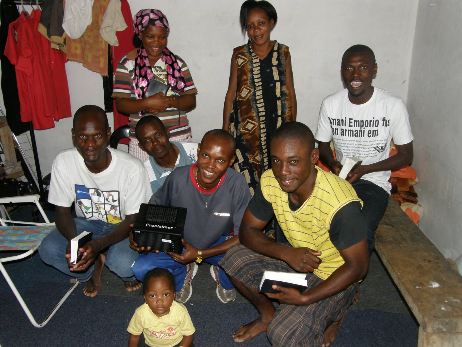 The Congolese brothers and sisters here in Etete were very blessed with the Proclaimer in Lingala, their mother language. A Proclaimer is the New Testament on a solar powered audio device. The guys sit outside in a group and turn it up loud so that everyone passing buy can hear the Word of God. Thank you so much Randy and Gloria Moore of Lake Highlands Church in Dallas for making this possible.