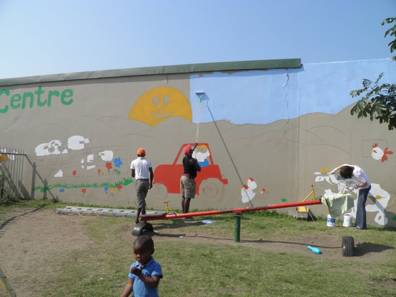 Last week several ladies got together to help our friend, Liezel Essop, paint a local creche.The Kwa Mama Care Center is situated in Shaka’s Head. At Kwa Mama they collect crumbs and create purpose on a daily basis. Child care is provided free of charge to any child who lives in Shaka’s Head. The center also provides opportunities for around 30 unemployed residents of this community. Each child gets feed two meals a day and have access to a library of knowledge for preschool and after school care.
